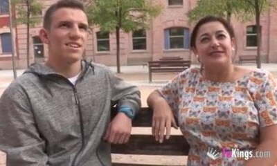 Chubby housewife, Melany likes lying on the bed, while a nasty guy is licking her wet cooch