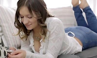 Elegant sweetie opens up narrow pussy and gets deflowered