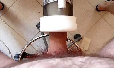Uncut Fuck-stick in Masturbation Machine with cumshot